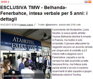 İddaya göre belhanda'nın fenerbahçeyle 5 yıl anlaştığı ve yıllık 2.5 milyon euro Alacağı söylendi